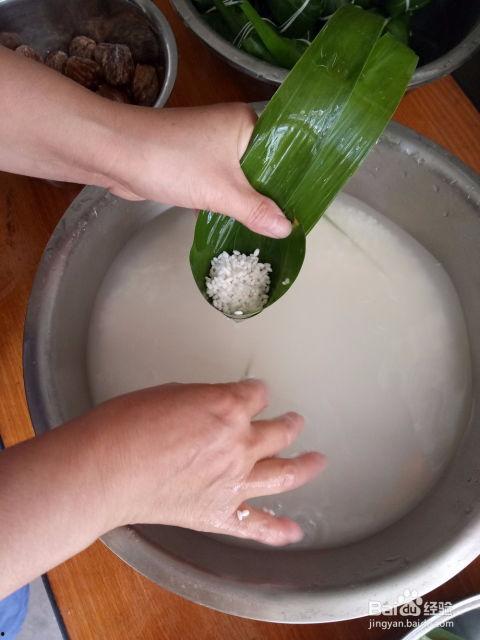 1. 清洗:将粽叶放入清水中浸泡,清洗干净,去除杂质。
